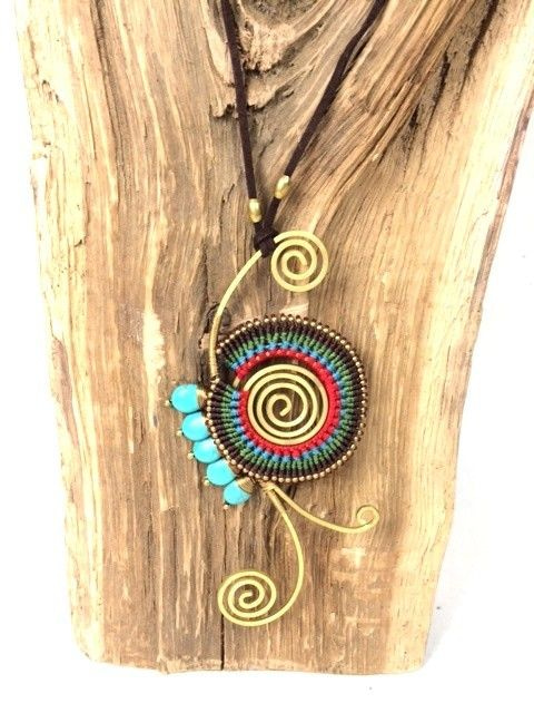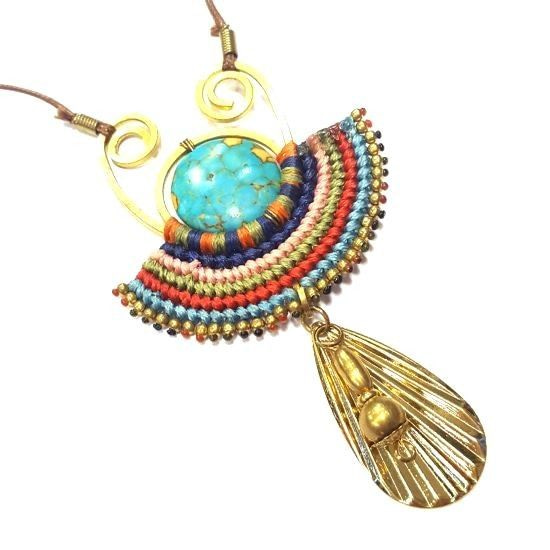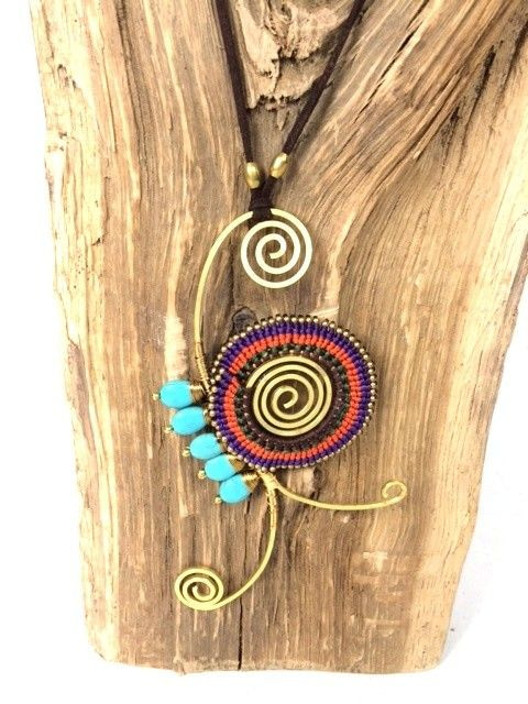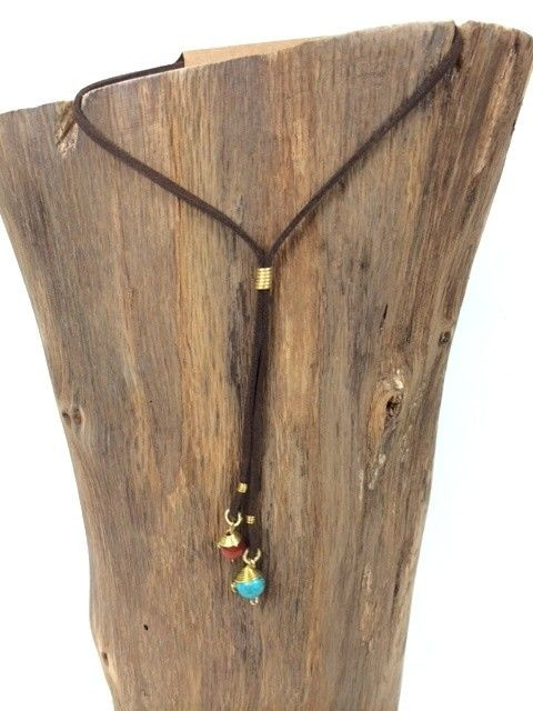 S_600208A - HANDMADE NECKLACE WITH BLUE STONE IBIZA ORIGINALS RED / BROWN (1st)