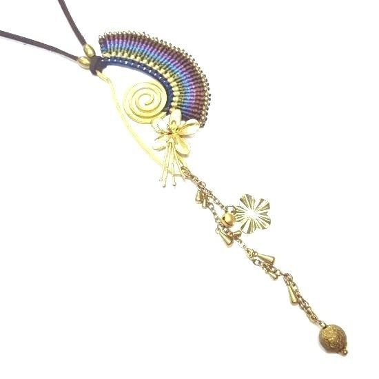 S_600213A - LUXURY HANDMADE IBIZA ORIGINALS NECKLACE PURPLE / BLUE FLOWER (1st)