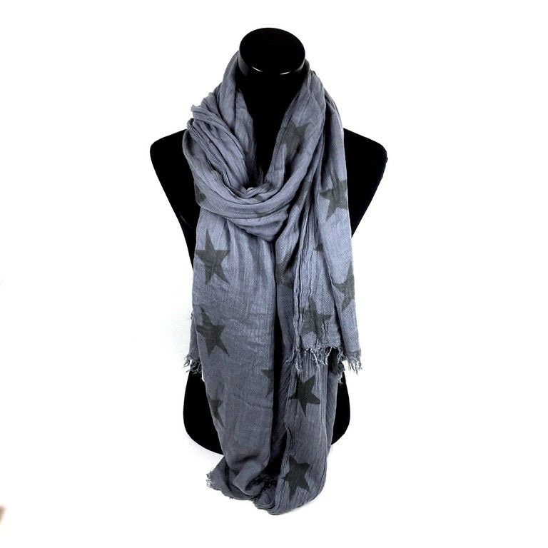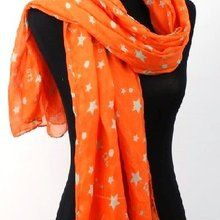 S_710199 - Art.nr: 710199 - SCARF GREY STAR WITH ORANGE (2pc)