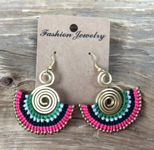 S_600212Q - HANDMADE IBIZA ORIGINALS EARRINGS PINK / GREEN (1st)