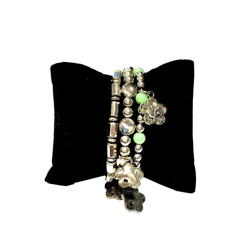 S_88280 - Art.nr: 88280 - LOOK SILVER BRACELET GREEN (6pc)
