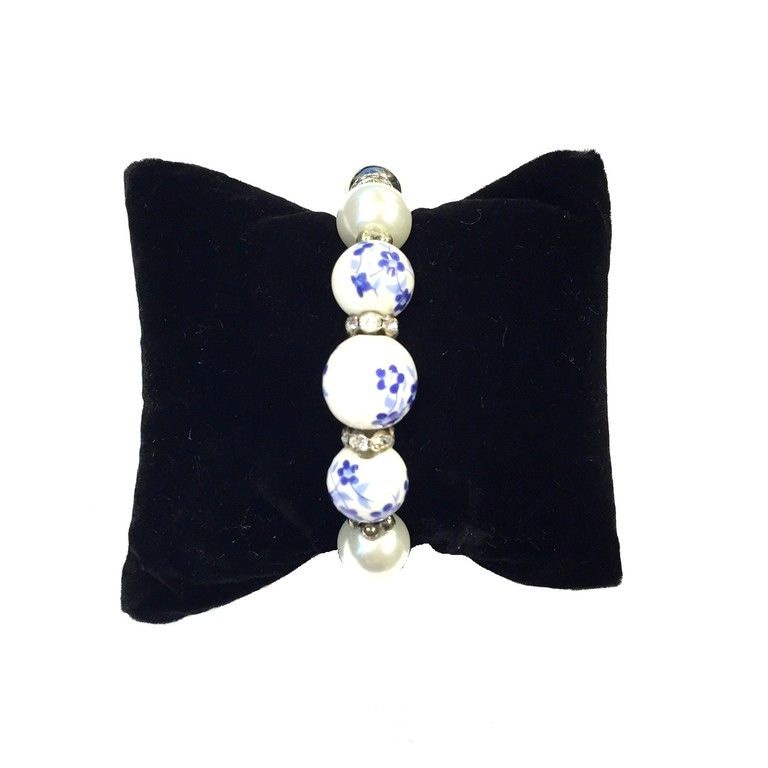 S_89625 - BRACELET WHITE / BLUE FLOWER (3p)
