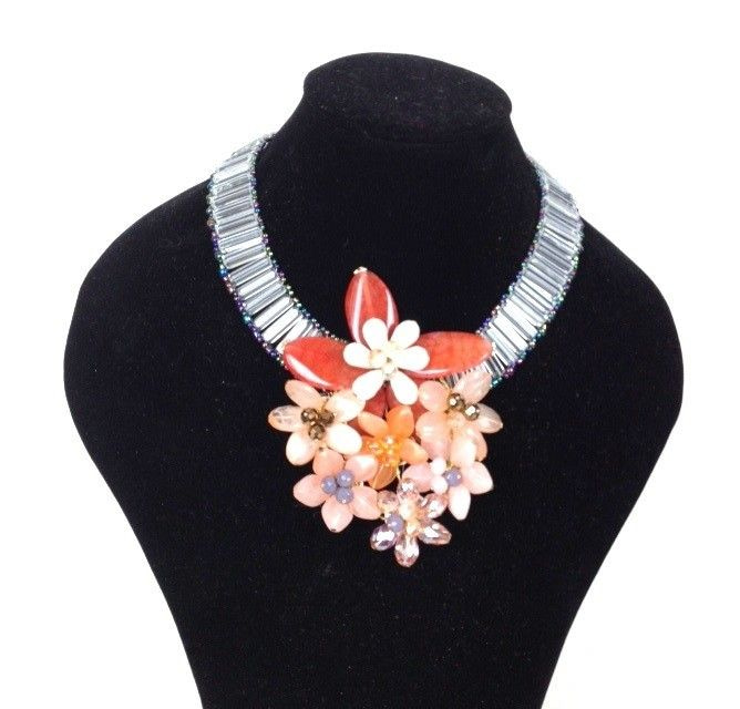 S_600600B - LUXURY NECKLACE SALMON WITH FLOWERS (1st)