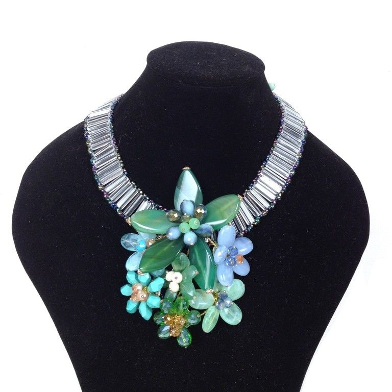 S_600600A - LUXURY NECKLACE GREEN WITH FLOWERS (1st)