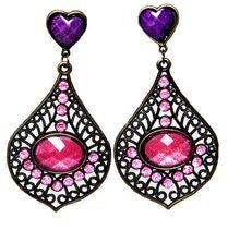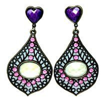 S_700311 - LUXURY DROP EARRINGS / HEART WITH STONE ROSE (1st)