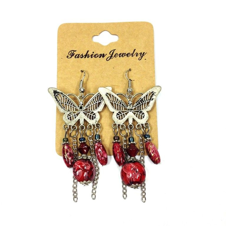 S_600036D - IBIZA LOOK EARRINGS WITH RED FEATHER (1st)