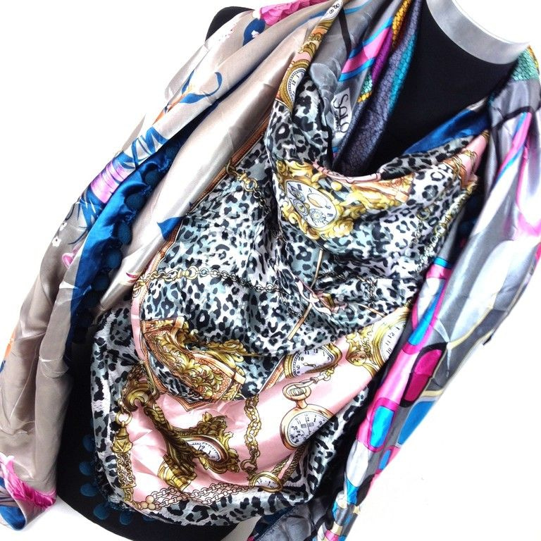 S_2563900 - TRICOLOR SCARF MODEL: SALMON, BLACK, BLUE (1st)