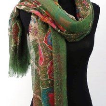 S_710028 - Art.nr: 710028 - SCARF GREEN / CREAM (2pc)