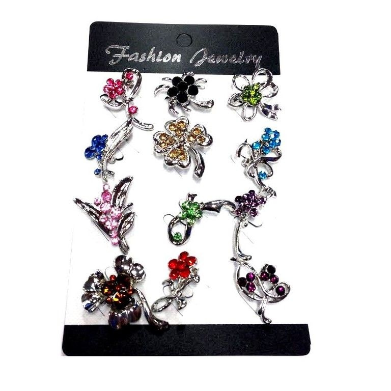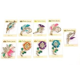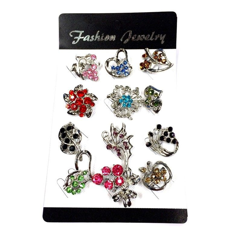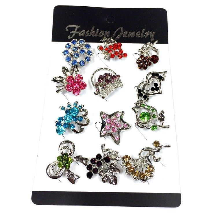 S_75296 - BROOCH SILVER RHINESTONE MIX ASSORTED COLORS (12st)
