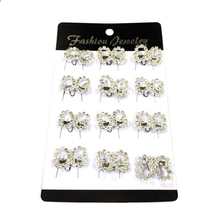 S_75309 - BROOCH SILVER RHINESTONE BUTTERFLY MIX (12pcs)