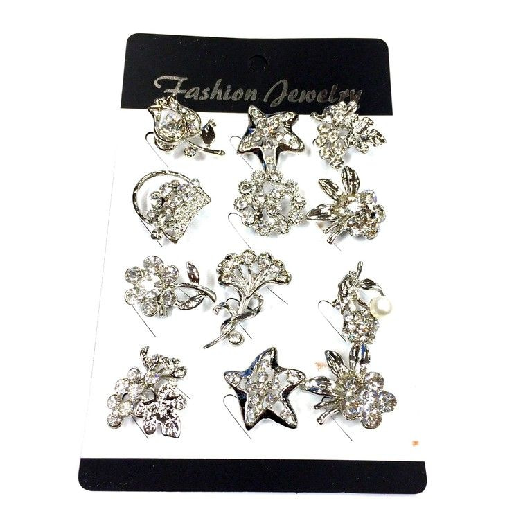 S_75310 - BROOCH SILVER RHINESTONE MIX VIS (12pcs)