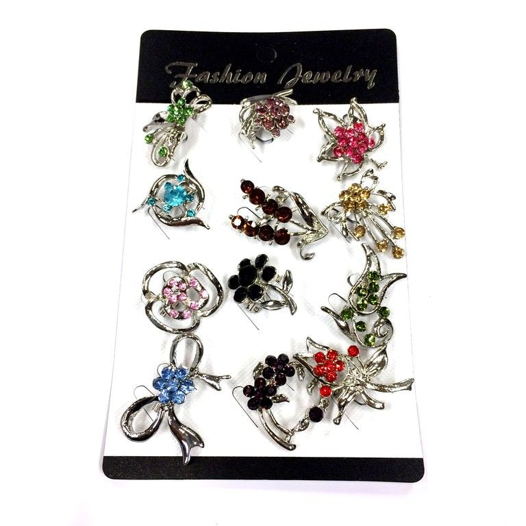 S_75291 - BROOCH SILVER RHINESTONE MIX ASSORTED COLORS (12st)