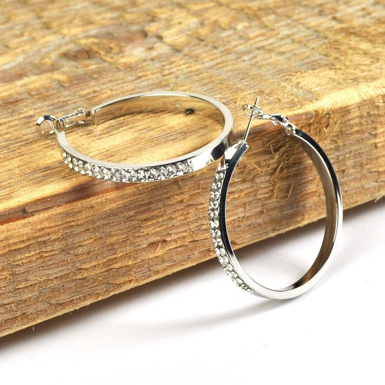 S_704901 - ROUND CREOLE EARRINGS WITH STRASS - 4 CM. (4st.)