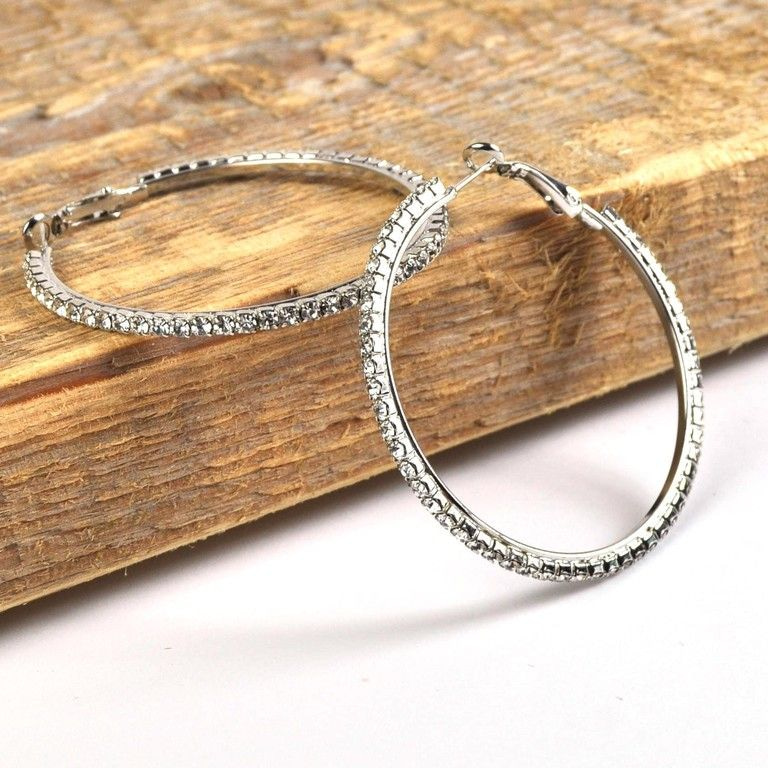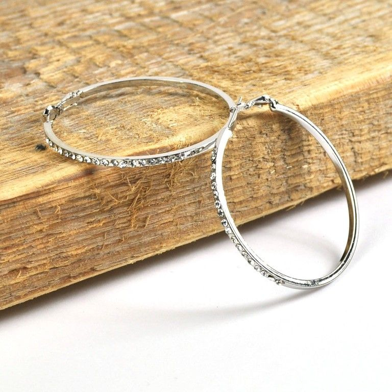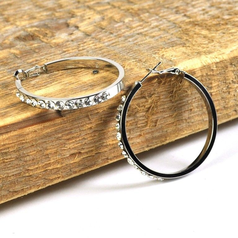 S_704703 - ROUND CREOLE EARRINGS WITH STRASS - 5 CM. (4st.)