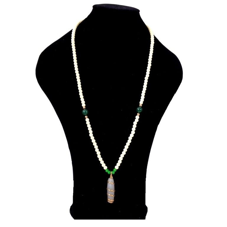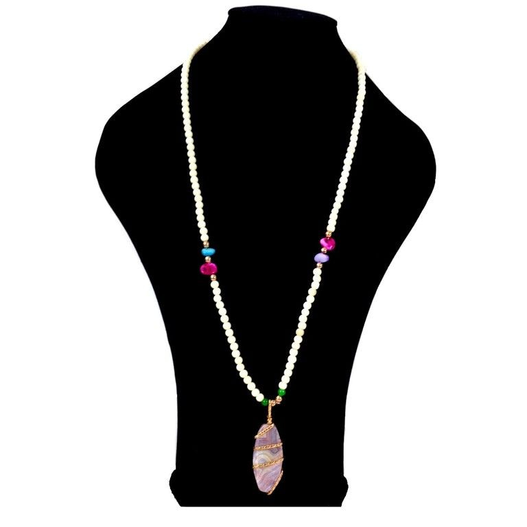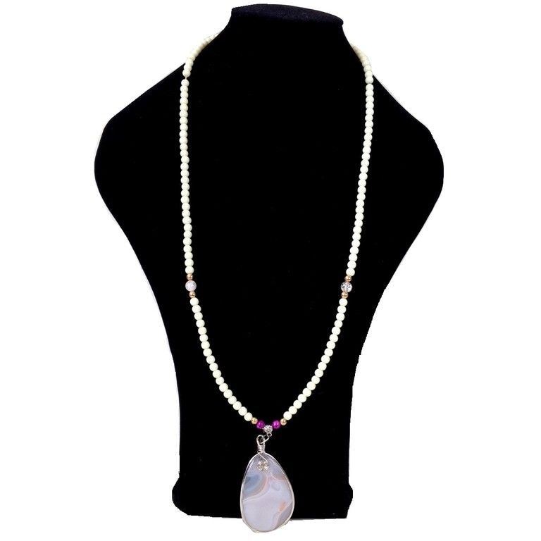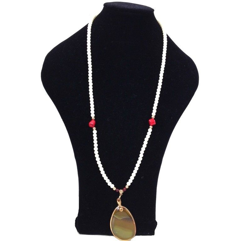 S_600593C - NECKLACE NATURAL OVAL SILVER / WHITE (1st)
