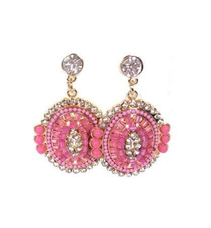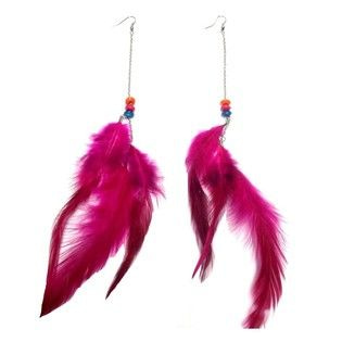 S_600745B - FEATHER EARRINGS with beads FUCHSIA (1st)