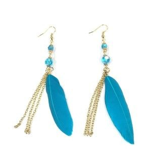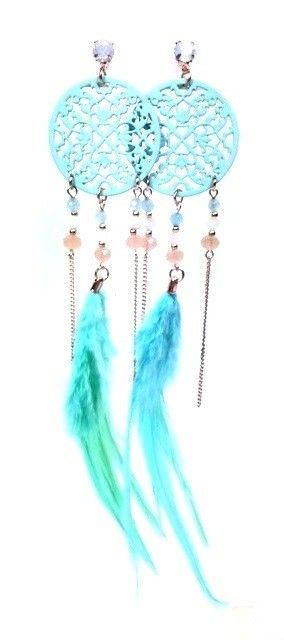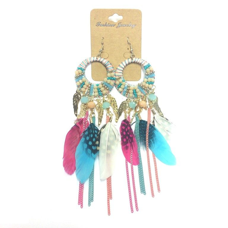 S_600745E - FEATHER EARRINGS TURQUOISE with beads (1st)