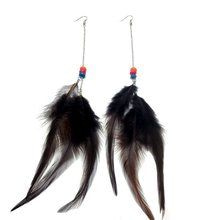S_600745A - RED FEATHER EARRINGS with beads (1st)