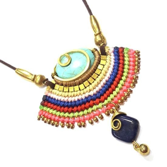 S_600225E - HANDMADE NECKLACE WITH BLUE STONE IBIZA ORIGINALS PURPLE / ORANGE (1st)