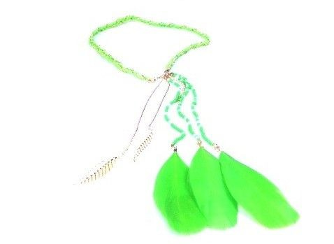 S_600113H - IBIZA LOOK BRAIDED HAIR BAND WITH FEATHERS AND BEADS GREEN (1st)