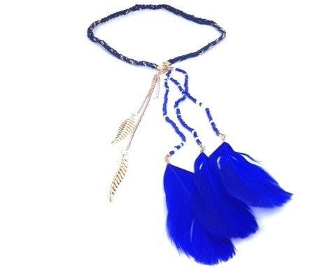 S_600113G - IBIZA LOOK BRAIDED HAIR BAND WITH FEATHERS AND BEADS BLUE (1st)