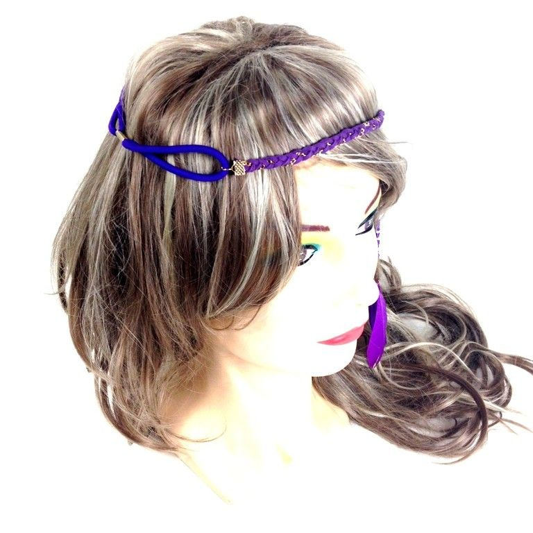 S_600113K - BRAIDED HAIR BAND WITH FEATHERS AND BEADS PURPLE (1st)