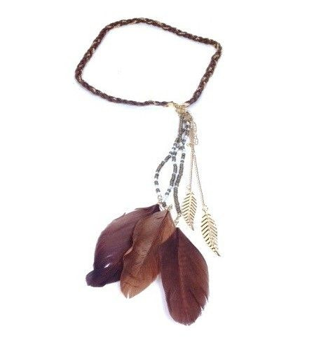 S_600113I - IBIZA LOOK BRAIDED HAIR BAND WITH FEATHERS AND BEADS BROWN (1st)