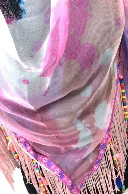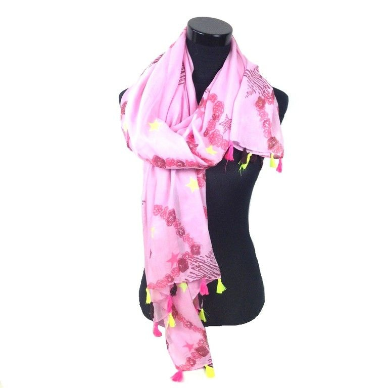 S_2380508 - BEAUTIFUL STAR SCARF / HEART & tassels PINK (1st)