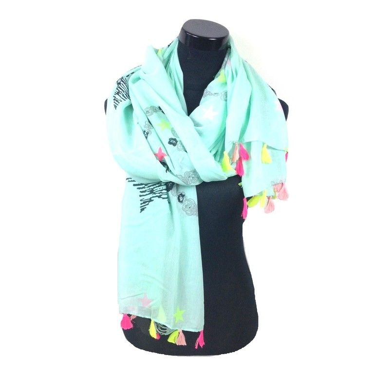 S_2380402 - BEAUTIFUL STAR SCARF / HEART & tassels MINT (1st)