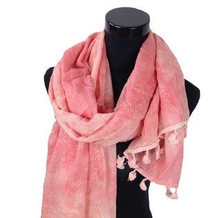 S_900017A - SCARF WITH WOVEN flowers and tassels OLD PINK / SALMON (1st)