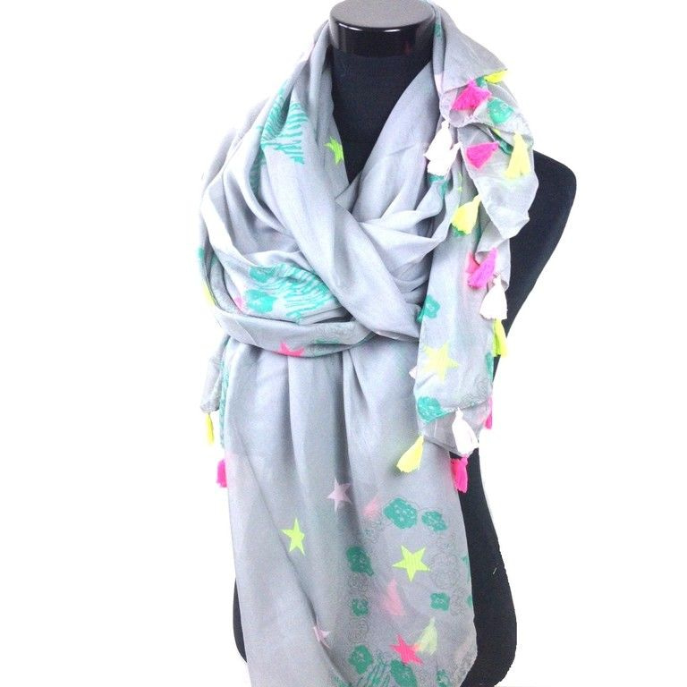 S_2380900 - BEAUTIFUL STAR SCARF / HART tassels & GRAY (1st)