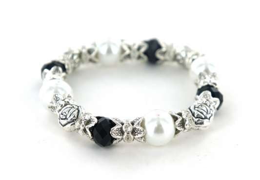 S_89690 - Art.nr: 89690 - LOOK SILVER BRACELET BLACK / WHITE (6pc)
