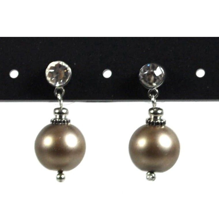 S_799947 - PEARL EARRINGS WITH STRASS - COGNAC (4paar.)