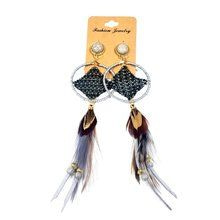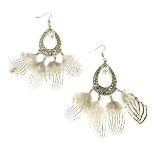 S_600754G - EARRINGS CHIC WHITE BEAD WITH FEATHERS (1st)