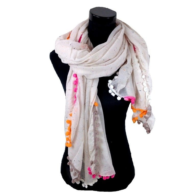 S_900012C - SCARF WITH COLORED CREAM SCOOPS / TAUPE (1st)