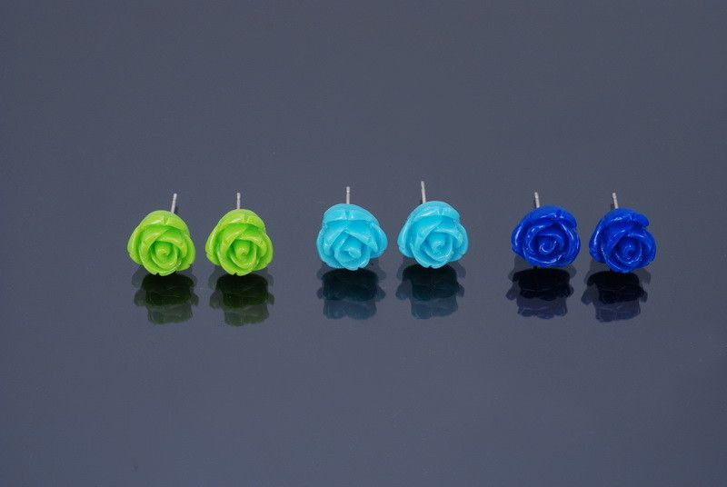 S_705422 - EARRINGS 3 COLOURS GREEN / BLUE (4pc)