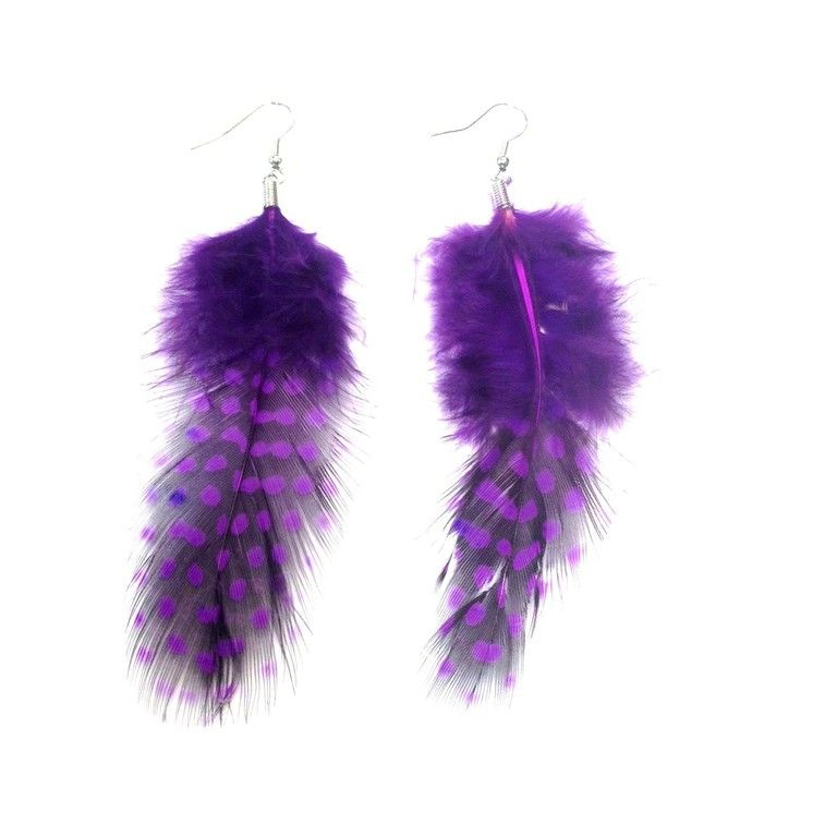 S_600784F - EARRINGS FEATHERS WITH PURPLE DOTS (1st)