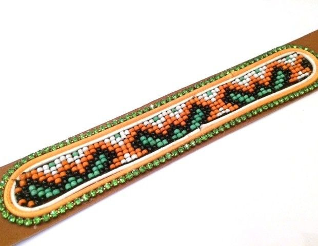 S_811256K - LEATHER IBIZA GREEN RHINESTONE BRACELET AZTEK (1st)