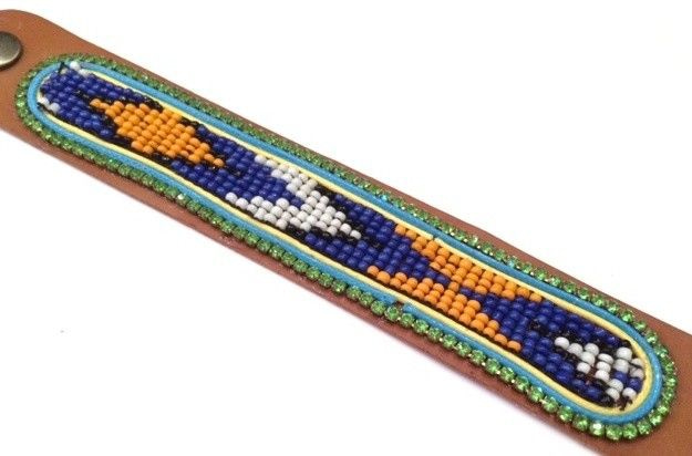 S_811256P - IBIZA LUXURY LEATHER BLUE RHINESTONE BRACELET AZTEK (1st)
