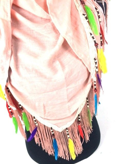 S_2150303 - LUXURY TRIANGLE SCARF FRILLS / SPRINGS / BEADS old pink (1st)