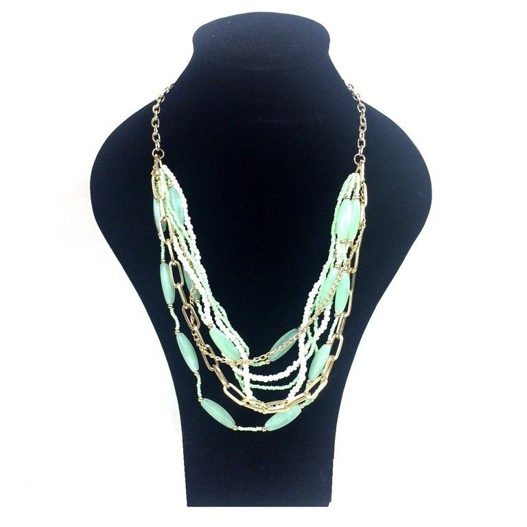S_600578B - 8-layer NECKLACE GOLD LOOK MINT / CREAM (1st)