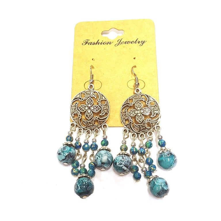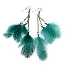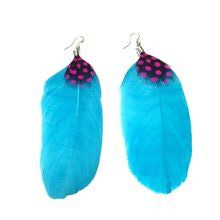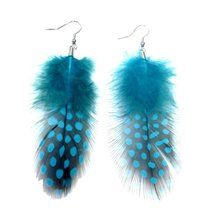 S_600784B - EARRINGS TURQUOISE FEATHERS WITH DOTS (1st)