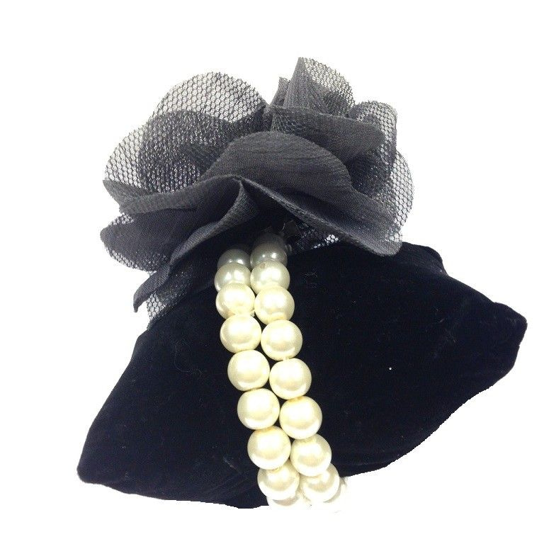 S_89506B - BRACELET PEARL / BROOCH FLOWER - BLACK (1st)