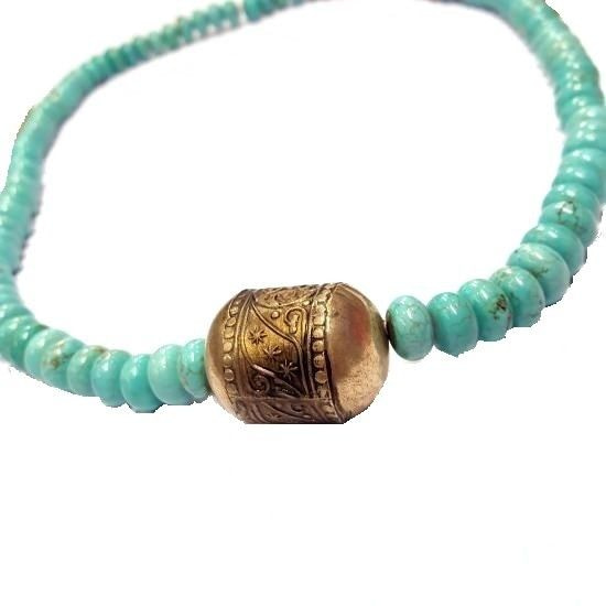 S_600575 - 9-slice NECKLACE GOLD LOOK NATURAL TURQUOISE (1st)