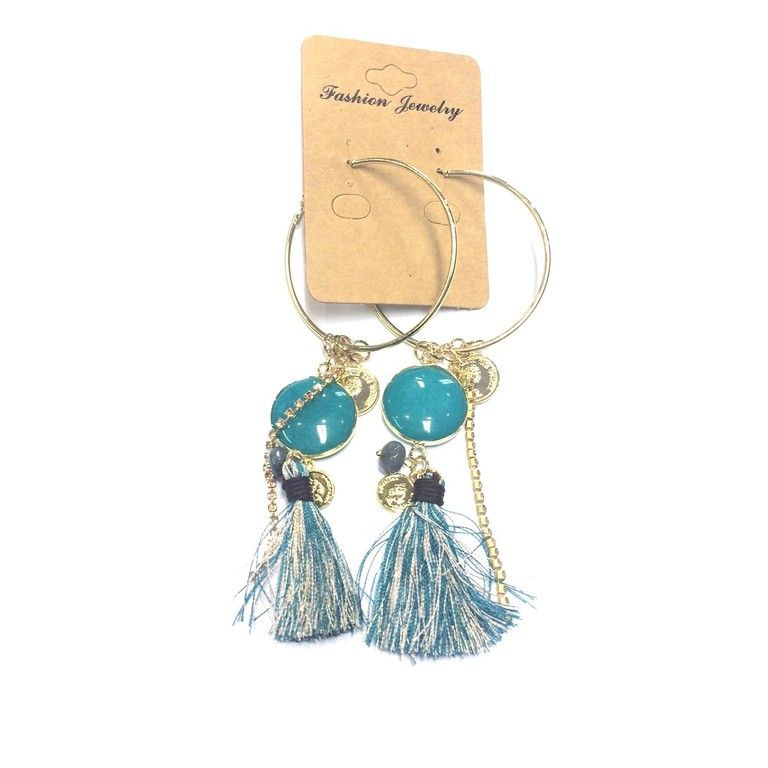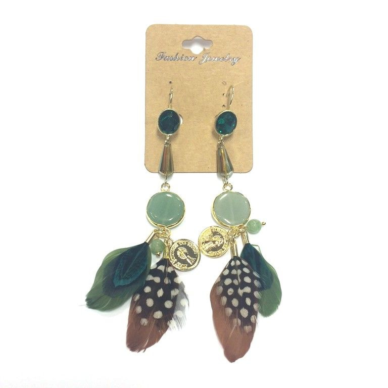 S_6113309 - LUXURY GREEN EARRINGS WITH FEATHERS, coins and STONE (1st)