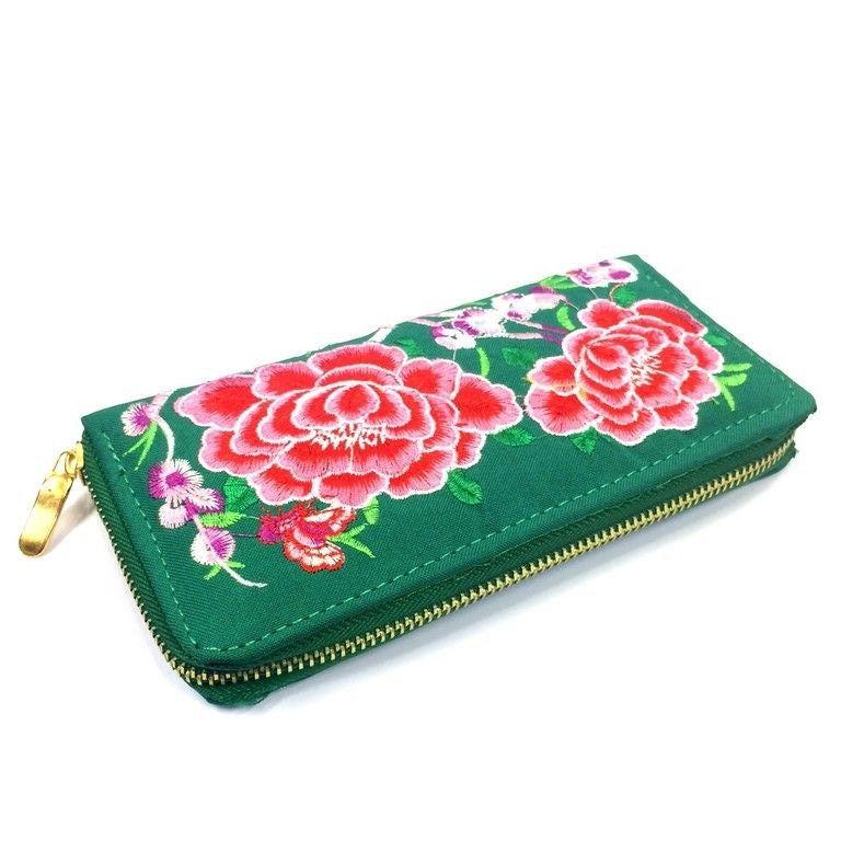 S_812022J - WALLET GREEN WITH YELLOW ROSE FLOWER CHARACTERISTICS (1st)