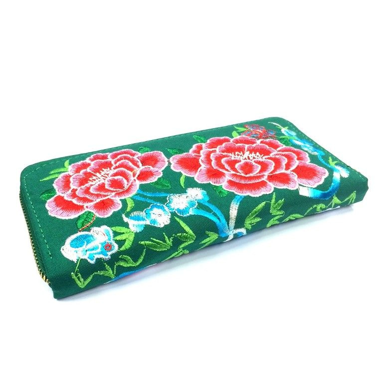 S_812022E - GREEN WALLET WITH CHARACTERISTIC FLOWER PINK PURPLE (1st)