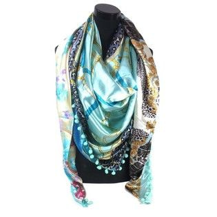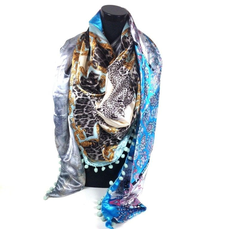 S_1450406 - LUXURY BLUE SCARF WITH FLOWERS (1st)
