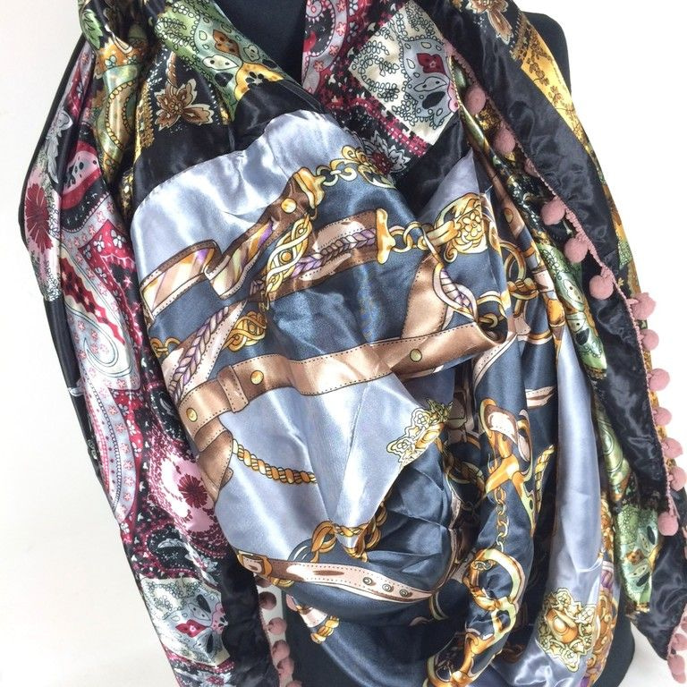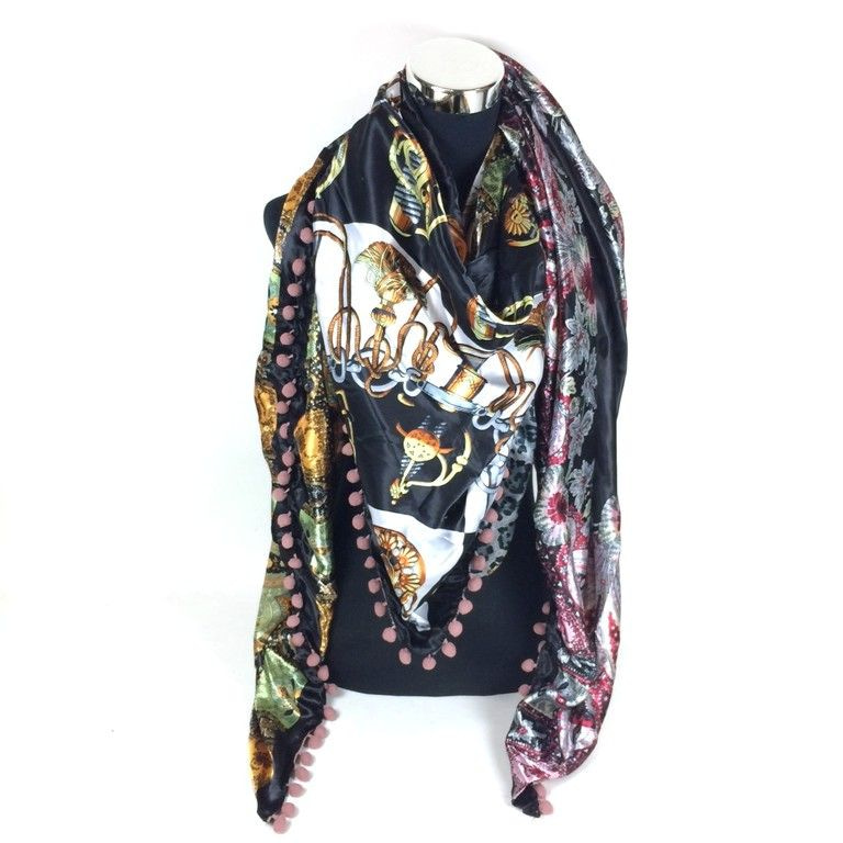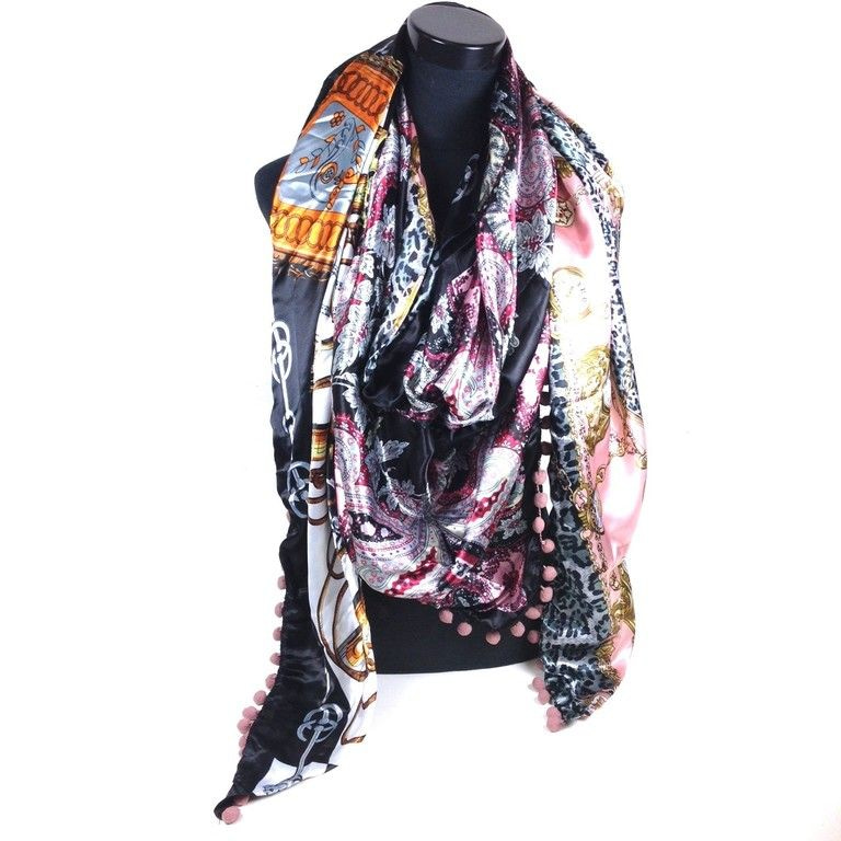S_2149007AC - LUXURY 2-SIDED TRIANGLE SCARF BLACK / PINK BULLETS (1st)