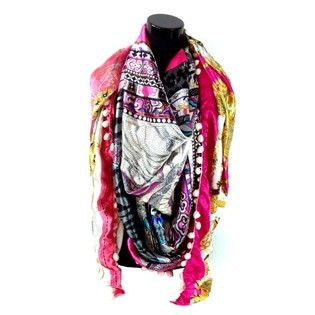 S_2149007DH - DELUXE 2-SIDED TRIANGLE SCARF BLACK - PINK SCOOPS (1st)